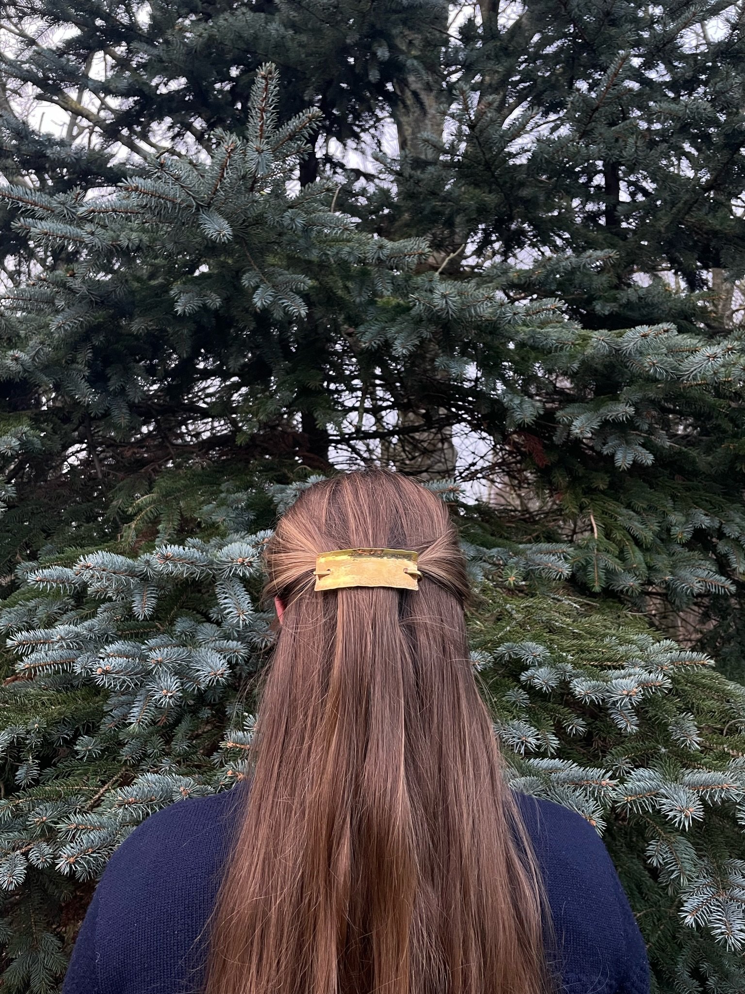 Forgyldt hamret hårspænde i 925s Sølv med mester- og holdighedsstempel.